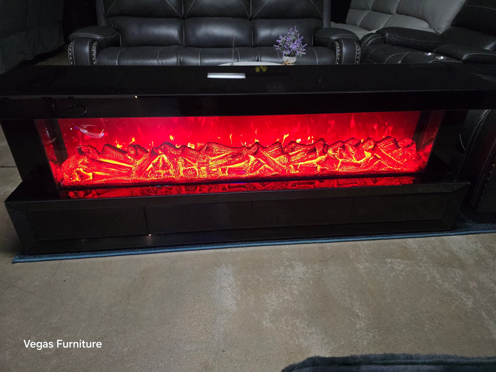 Dorian 71"W Black Finish TV Stand with Fireplace and Speaker