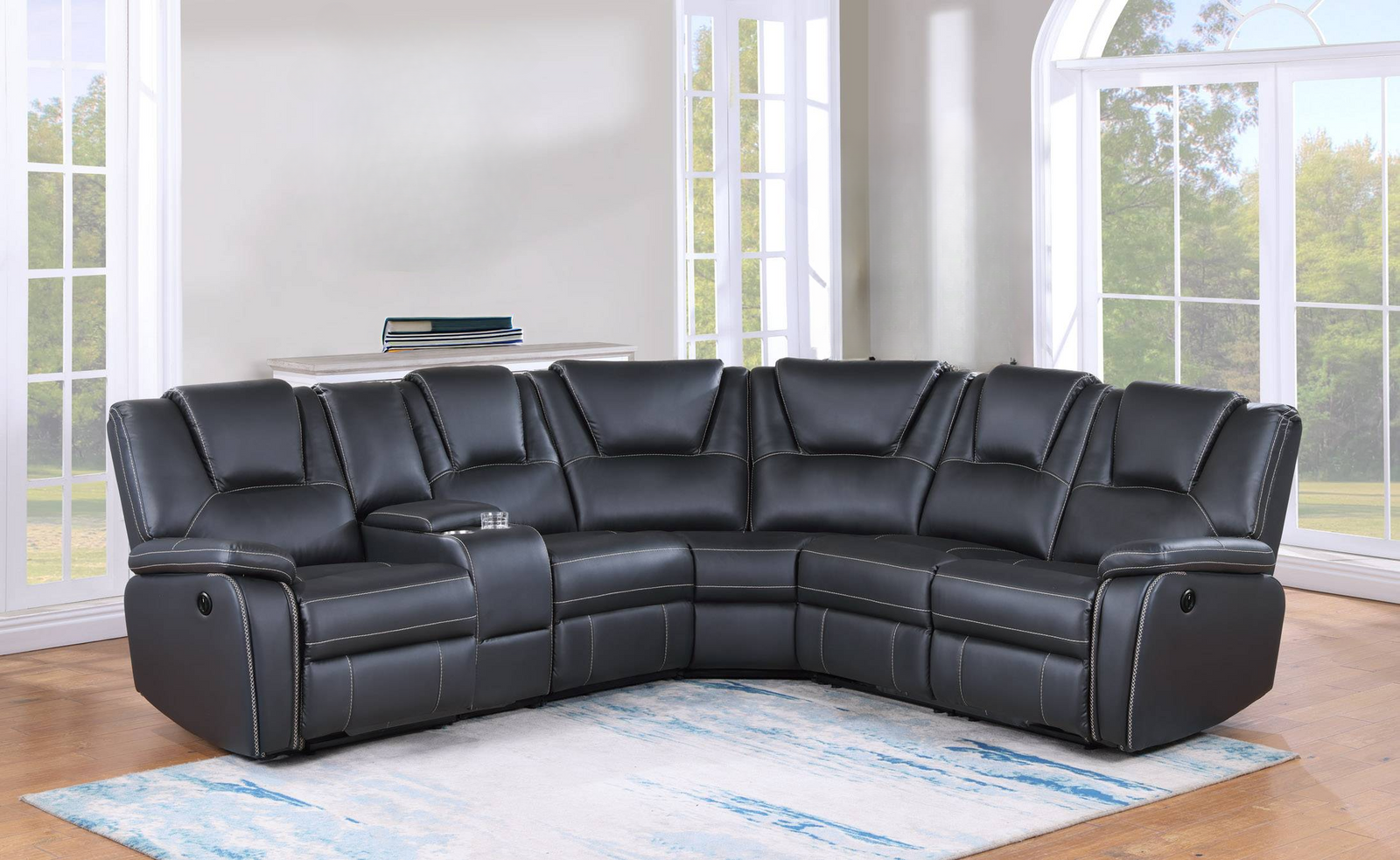 Breathable Air Leather Material Faux Leather Modular Sectional Sofa with 3 Manual Recliners and Storage Console with Stainless Steel Cup Holders.BLACK