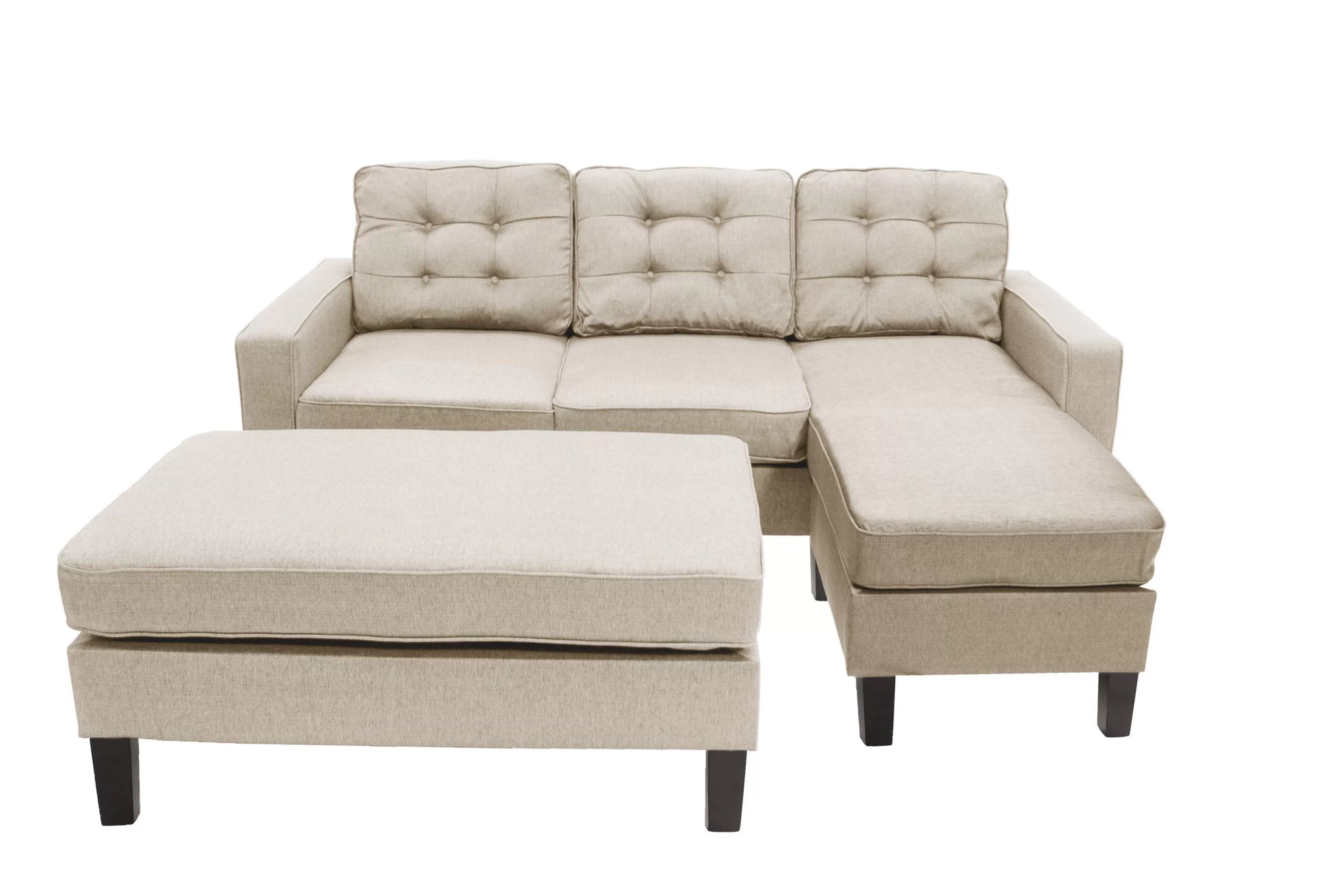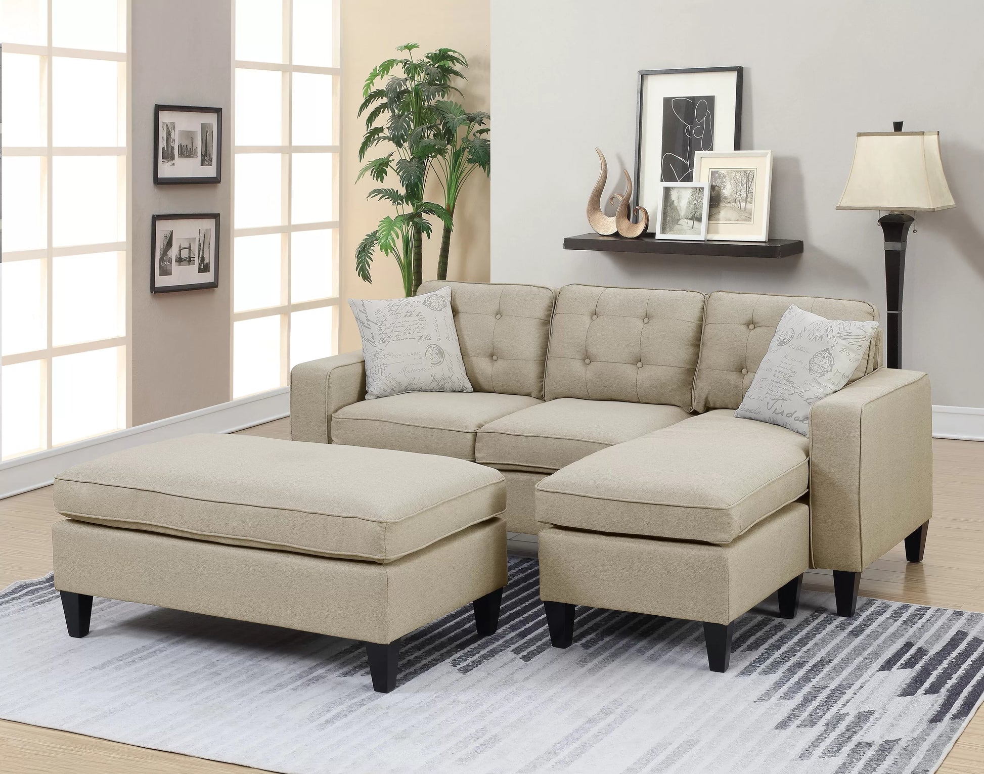 Experience the perfect blend of modern design and comfort with our reversible sectional sofa. Ideal for any living room or den, it's not just furniture—it's a lifestyle upgrade. Discover the versatility and comfort you've been searching for, tailored to fit your unique space and style. Crafted for both functionality and relaxation, our sectional comes complete with two plush throw pillows, adding a touch of coziness and charm to your home decor. The included ottoman enhances your lounging experience, extending the sectional for a spacious footrest area when placed adjacent to the sofa. Whether you prefer the chaise on the left or right, simply adjust the removable small base to suit your layout. This innovative feature allows you to customize your seating arrangement with ease.
