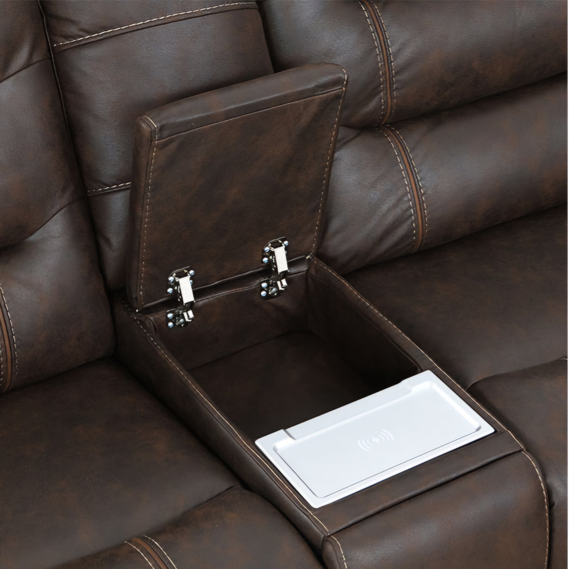 Experience ultimate comfort with our high quality, brown fabric recliner. Featuring power back and seat recline, you can effortlessly find your perfect positioning. Enjoy added convenience with hidden stainless steel cupholders in each arm. Upgrade your relaxation game today.