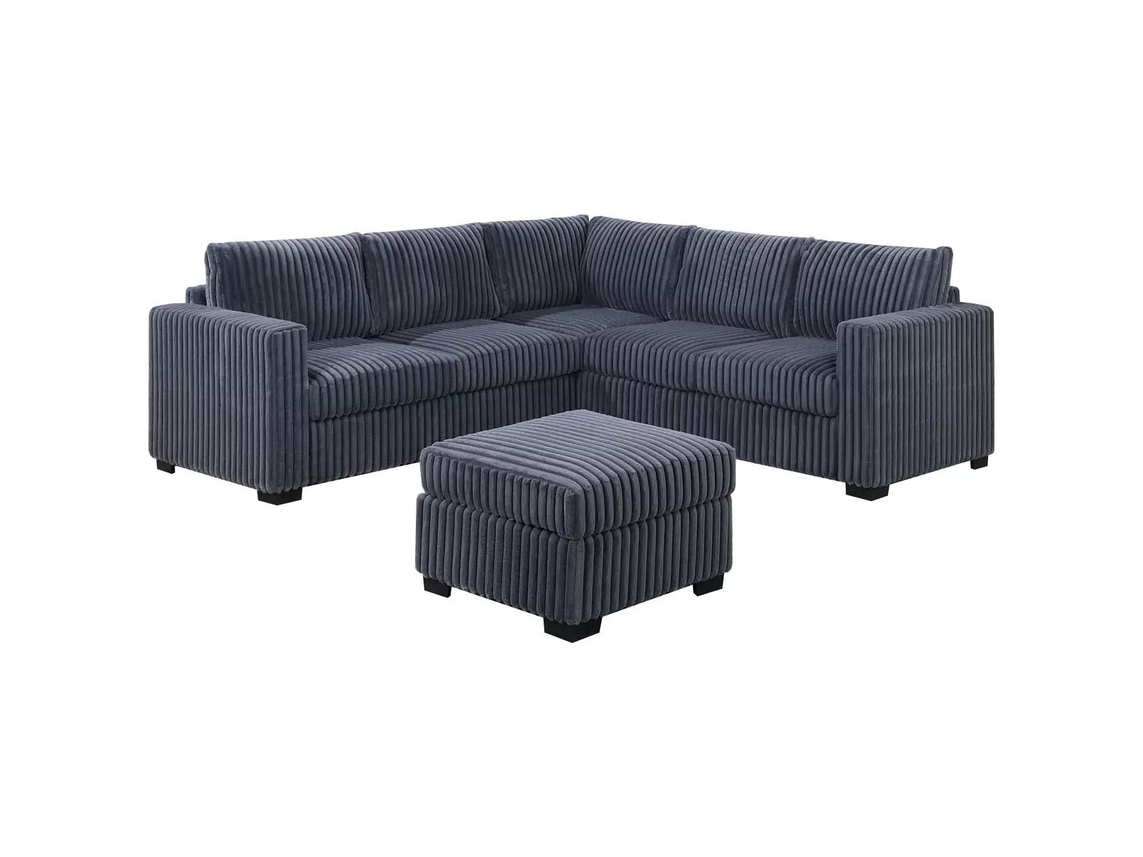 Transform your living room into a cozy oasis where relaxation meets style with the 4-Piece Sectional Set with Ottoman. With generous seating for up to 4 people, this sectional set is ideal for large gatherings or family movie nights. The included ottoman offers additional versatility, serving as a comfortable footrest or extra seating when needed. The L-shaped design offers versatile seating arrangements, allowing you to configure the sectional to fit your space perfectly. Whether you prefer a cozy corner setup or an extended lounge area, this sectional adapts effortlessly to your needs. Sink into the plush back pillows that provide ample support while lounging perfect for everyday relaxation or entertaining guests. The sectional features low-profile legs that add a modern touch. The fur-like corduroy material not only looks inviting but also feels incredibly soft to the touch, adding a luxurious texture to your living room. Whether you're unwinding after a long day or hosting friends and family, this sectional promises unparalleled comfort and sophistication.